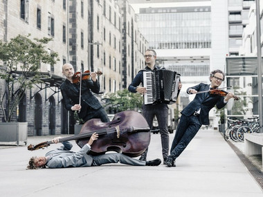 Ein virtuoser klassischer Violinist mit Vorliebe für osteuropäische Musik, ein Jazzgeiger mit Punkrock-Erfahrung, ein meisterhaft improvisierender Akkordeonist mit Balkan-Sound im Blut und ein Bassist, der sich in Sinfonieorchestern ebenso zu Hause fühlt wie in Jazzcombos oder Funkbands – hier kommen vier Musiker zusammen, die unterschiedlicher nicht sein könnten: Christoph König, Maurice Mauerer, Miroslav Nisic und Jakob Kühnemann.